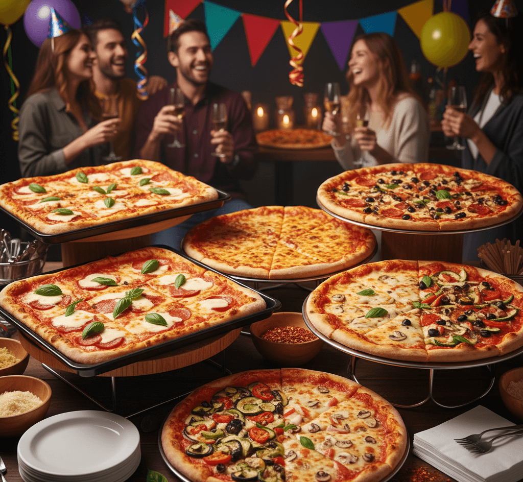 Frisch gebackene Pizzableche, Pasta, Salate und mehr – perfekt für Geburtstage, Firmenfeiern und Events jeder Größe.