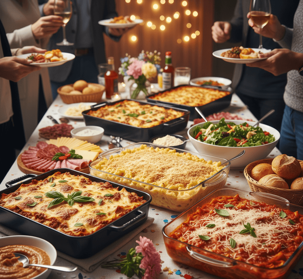 Ofenfrisch & sättigend – z. B. Lasagne oder cremiger Pasta-Auflauf für Gruppen.